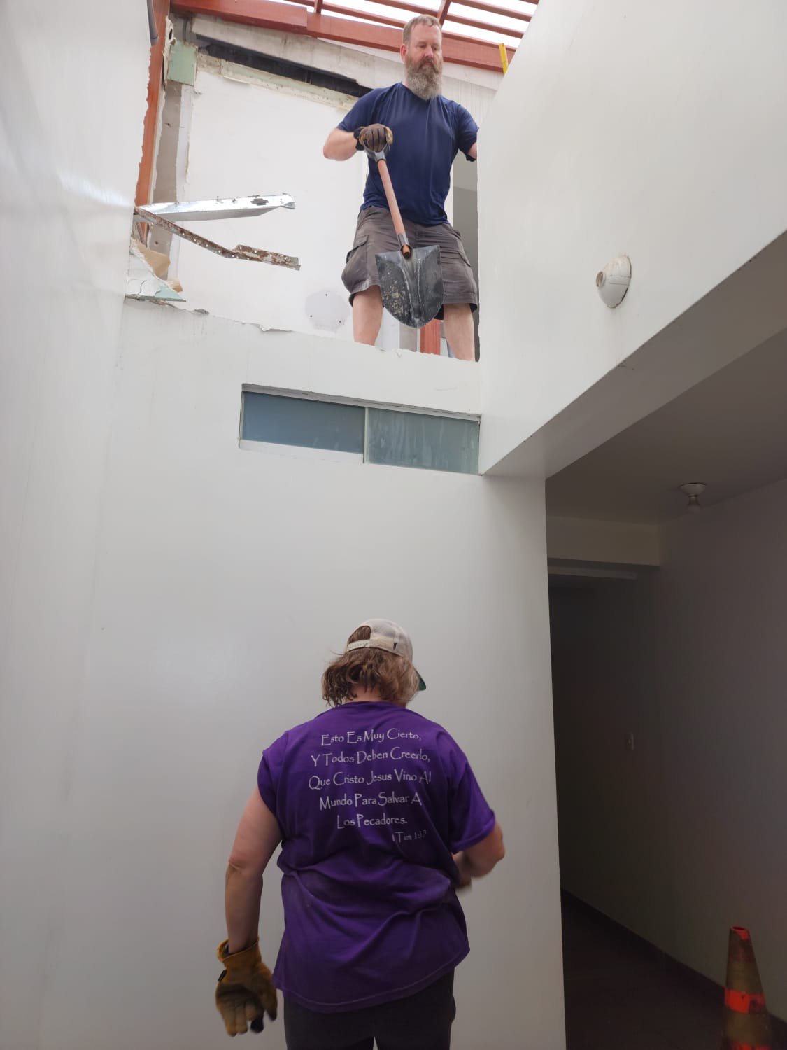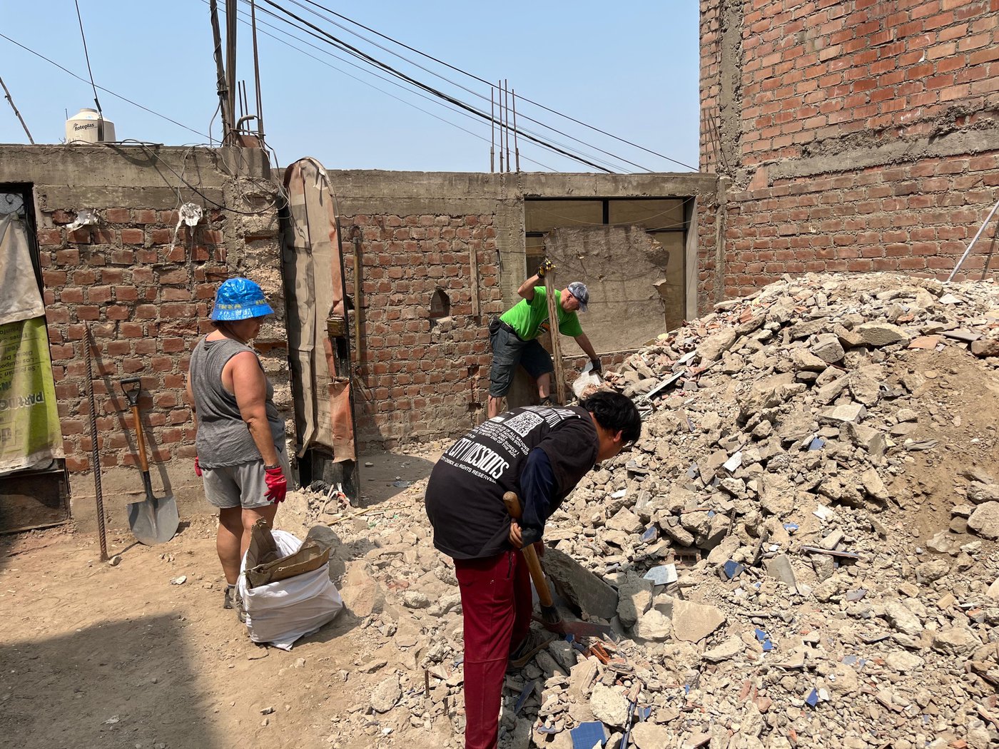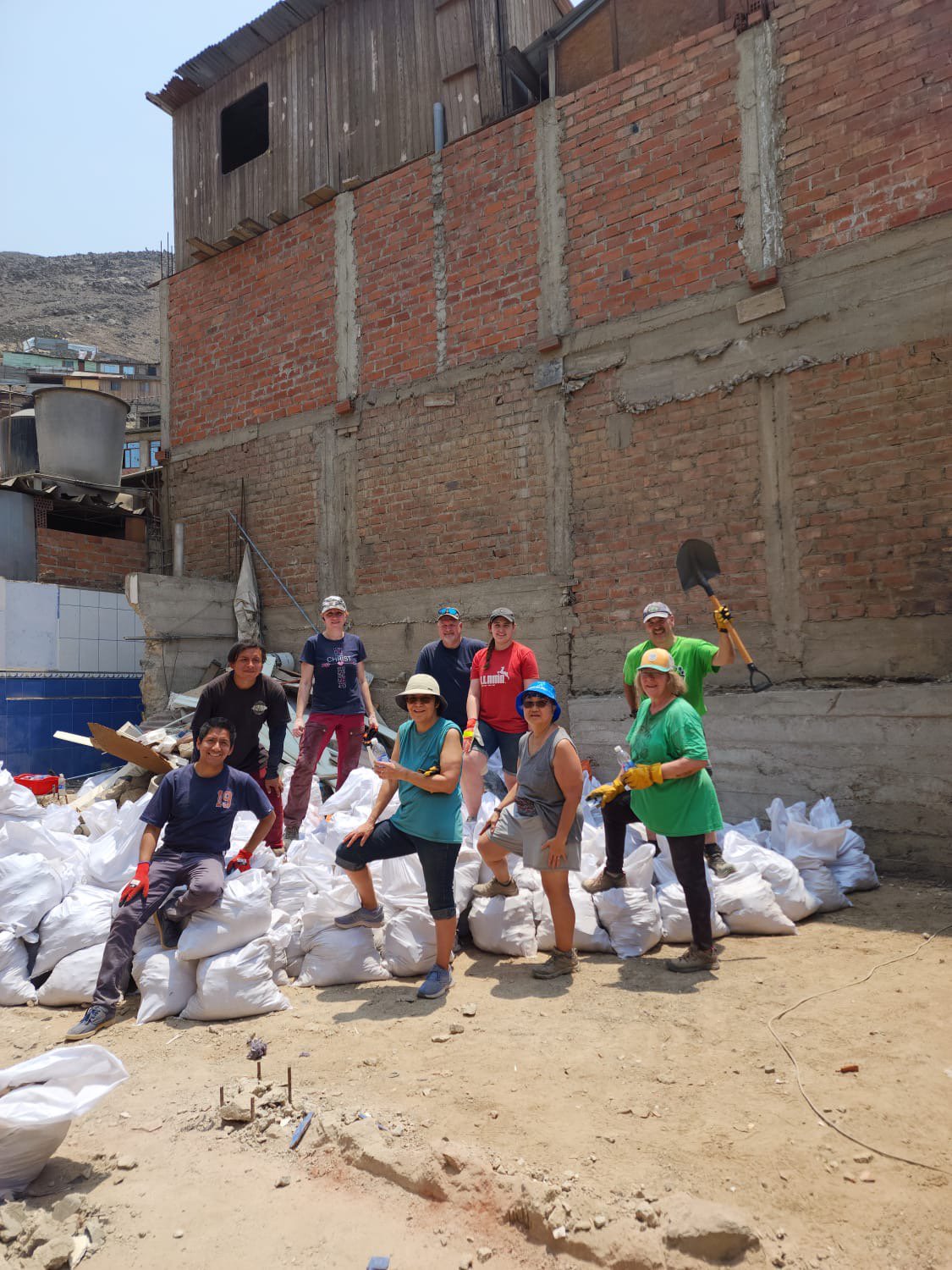 Ok guys! We have plenty of fun things to share today. After a good breakfast at our hotel, we hopped in the van (more like a slow crawl after the strenuous work yesterday) and headed to Casa de Luz. Our group was split again. This time, Robert and Colby helped to take out a bathroom. Laila and Leah picked up the paint brushes and resumed their work for the mural. Meagan went to more homes to meet with mothers and 2 women gave their lives to Christ! It has been such a blessing to tell people of God’s love for us and to see lives changed. The rest of the team was sent to the newly purchased lots behind Casa de Luz to clear it for the new soccer field. Julie told a fun story about the separation of concrete and rock. It was very difficult to tell the difference! These guys worked very hard! Shannon used her talent to bake to make over 100 banana chocolate chip muffins for everyone. Muy delicioso! Prayers are needed for Leah, as she is not feeling well. Please pray that she would be healthy soon! We have had a lot of good memories so far and can’t wait to continue to celebrate what God is doing in Peru. More adventures await us tomorrow. Hasta mañana!